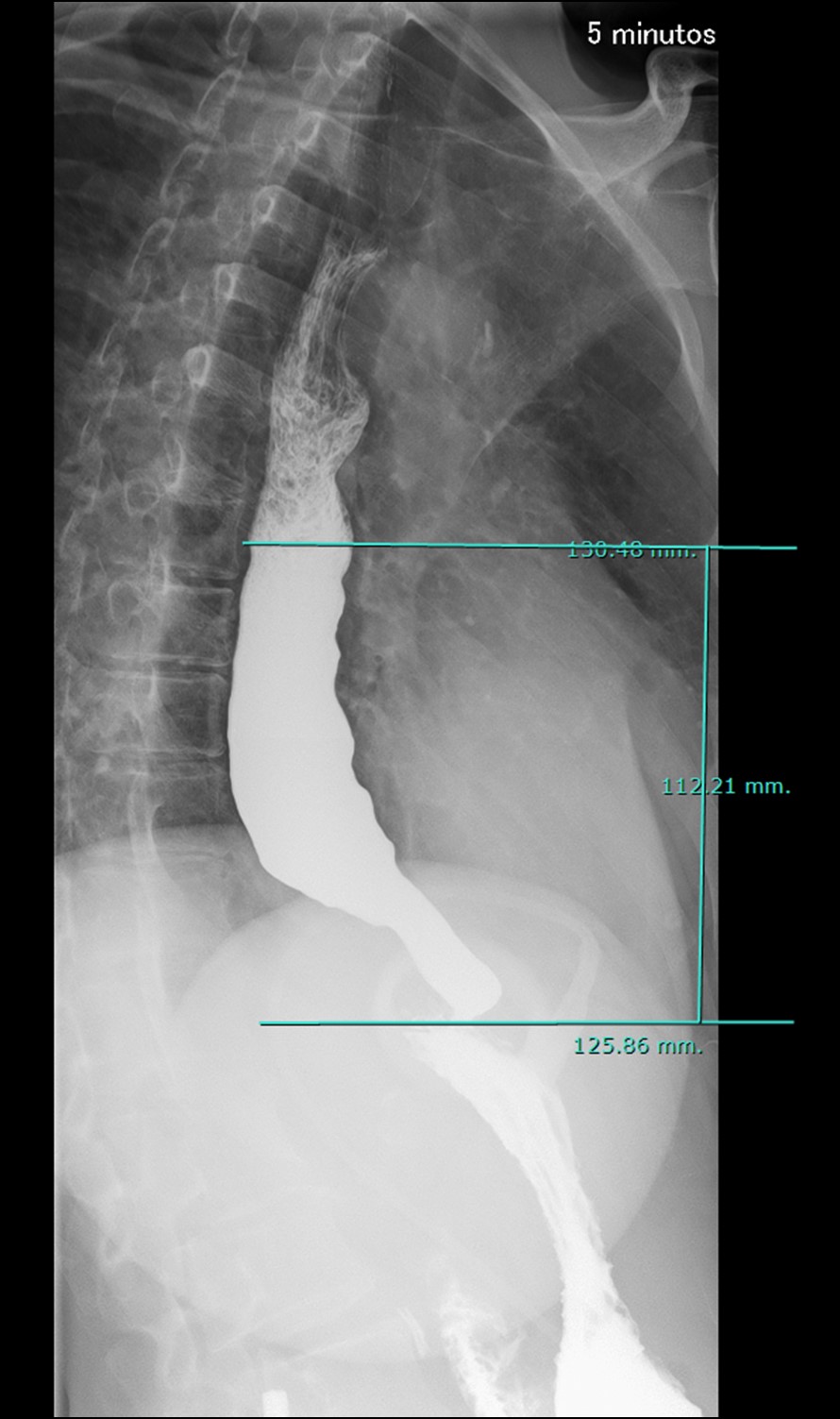 Figura 2: Adquisición a los 5 minutos con columna de bario en esófago distal de hasta 112 mm.