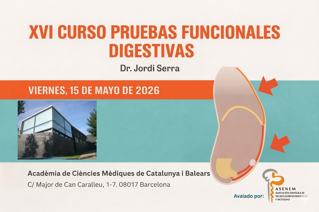 Apreciados amigos, es para mí un placer anunciaros la realización del XVI Curso de Pruebas Funcionales Digestivas. Como en años anteriores, esta edición del curso va a realizarse de nuevo en las instalaciones de la Acadèmia de Ciències Mèdiques de Cataluña y Baleares, de forma únicamente presencial.
